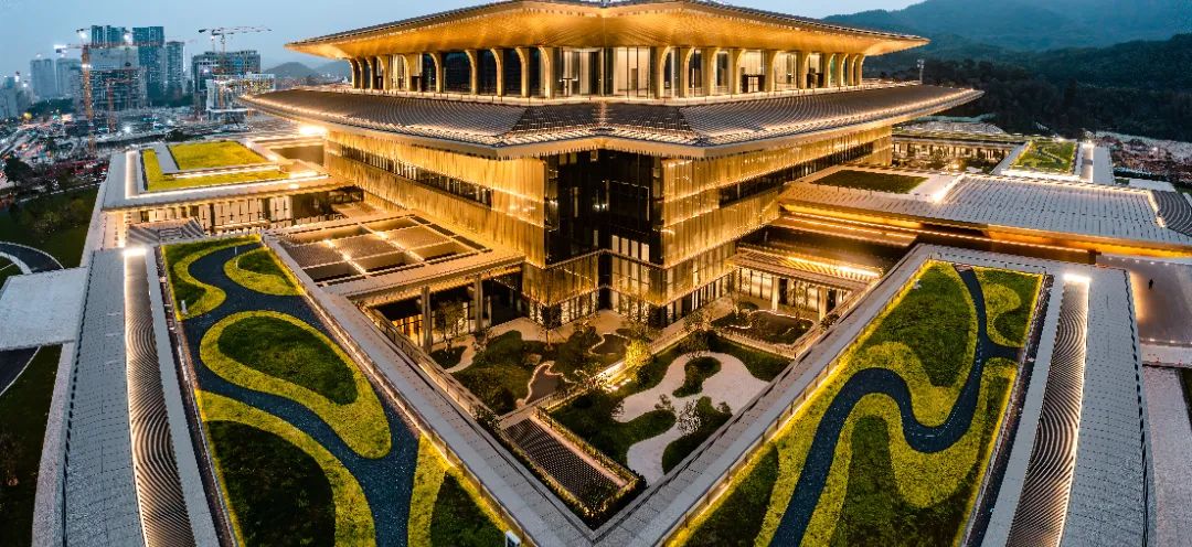 白云國際會議中心國際會堂,由“中國館之父”何鏡堂院士團隊設計,以“云山疊景”為設計理念,融入挑檐、遮陽、庭院等嶺南建筑特色,演繹嶺南新中式風格建筑風貌。